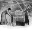 Camera obscura transportable, grandeur homme/pièce, 4 murs en bois chacun avec appareil optique, à l'intérieur : 4 murs en papier (Ars Magna (c'est le cas de le dire), 1646). On entrait en passant par une trappe à l'intérieur des deux carrés concentriques, et l'on voyageait en voyeur avec des paysages potentiels tout autour de soi. Être invisible, tout voir : est-ce une contrainte ou son contraire? Au dix-huitième siècle on voyagea en chaise à porteurs convertie en camera obscura, et au dix-neuvième en taxi-appareil photo (Valentine Blanchard, Londres, 1862), ce qui témoigne d'un désir scopophilicadillac poussé. Nous concluons que la contrainte fut plutôt celle, louable, de la jésuiticité : l'exercice des cinq sens et surtout de la vision, recommandé par Saint Loyola, pour faire réapparaître le monde à l'intérieur de la grotte platonique du cerveau.